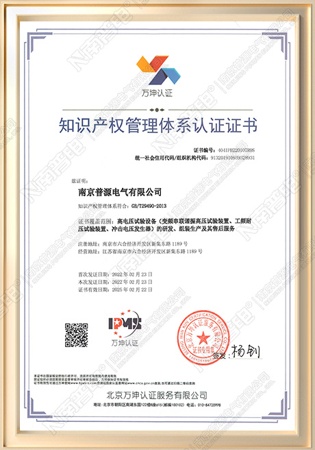知识产权管理体系认证证书