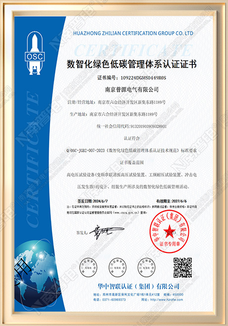 数智化绿色低碳管理体系认证证书
