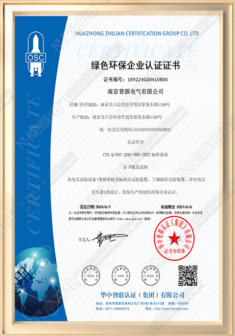 绿色环保企业认证证书