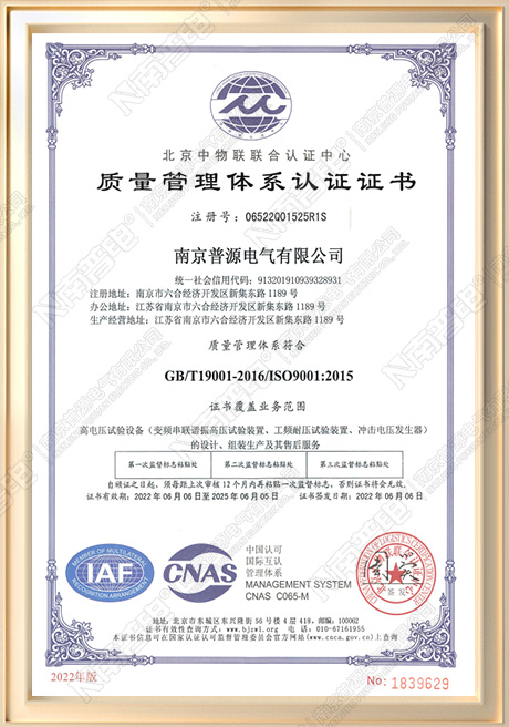 质量管理体系认证证书