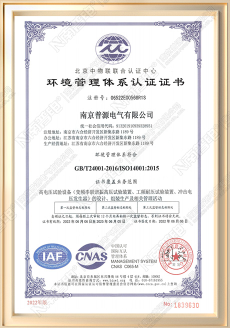 环境管理体系认证证书