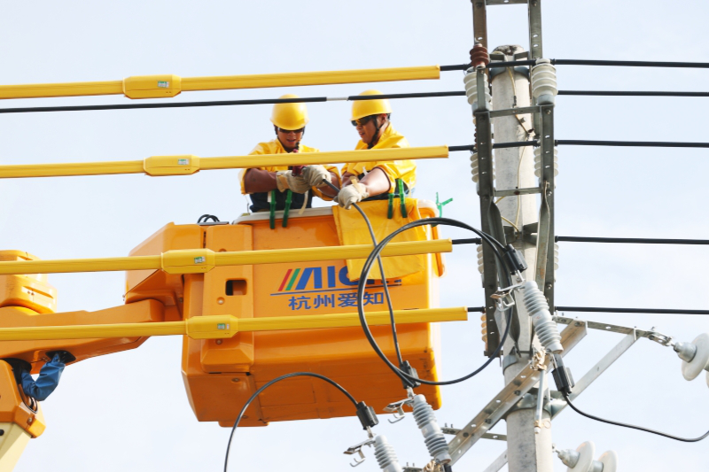 国网浙江电力员工开展不停电作业,保障居民安全可靠用电。