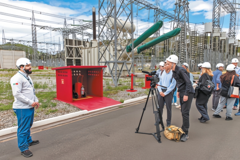 中巴两国记者在美丽山特高压直流输电二期项目里约换流站联合采访国网巴控巴西员工