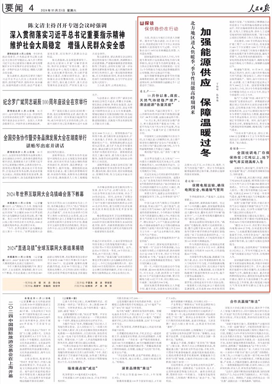 河北雄安,1000千伏特高压变电站扩建工程于11月19日投运,变电容量从600万千伏安增至1200万千伏安;浙江温州市,供电部门对海岛乡镇鹿西乡的供电海缆开展冬季特巡检查,避免冬季雾气、风浪等带来的腐蚀损伤……国家电网推进电网改造提升,确保电网安全运行和电力可靠供应,保障群众温暖过冬。