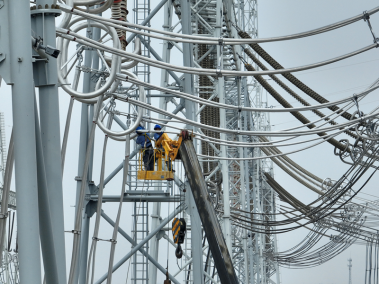 工程施工人员开展1号主变投运前检查工作。