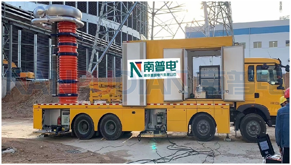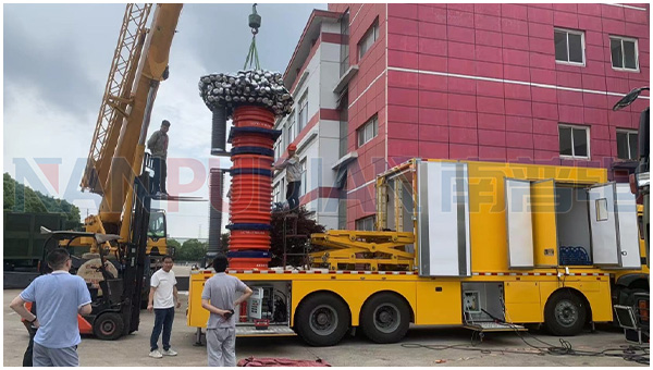 500GIS耐压试验车载式750kV伞群电抗器试验现场